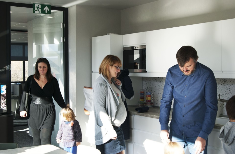 Természetes volt, hogy a beköltözést követő első lehetséges alkalommal munkatársaink családtagjainak is mutassuk meg a házat. November 11-én a teremgarázstól a tetőteraszokig minden arról szólt, hogy kicsik és nagyok, házastársak és szülők beleláthassanak az itt dolgozók hétköznapjaiba. Leülhessenek Anya vagy Apa íróasztalához, kipróbálják a közösségi tereket vagy gyönyörködjenek az irodákból és a teraszokról nyíló panorámában. A csoportokat a NEXON vezetői kísérték végig az épületen, a gyerekeket még külön meglepetés is várta. Az élményt pedig az erre az alkalomra készült Instagram-fal előtt állva is meg lehetett osztani.